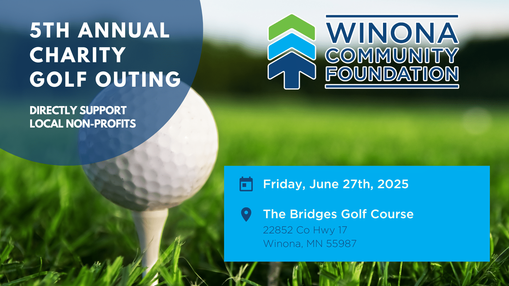 2025 Charity Golf Event June 27 Help our local charities make a difference in the Winona area. By participating in this golf outing, you are directly supporting the competitive Community Grant program that benefits local non-profits. Register Online5th Annual Charity Golf Outing Friday, June 27 12:30 Shotgun The Bridges Golf Course in Winona Mandi Olson