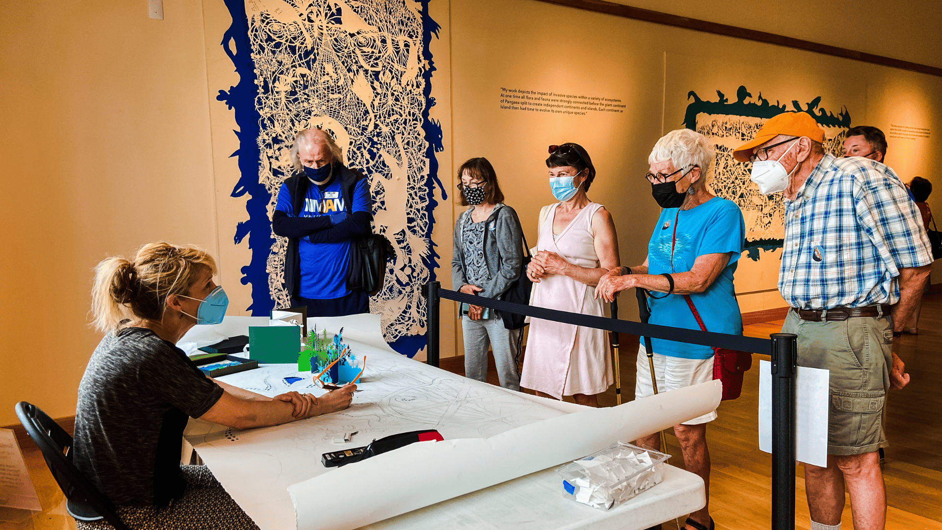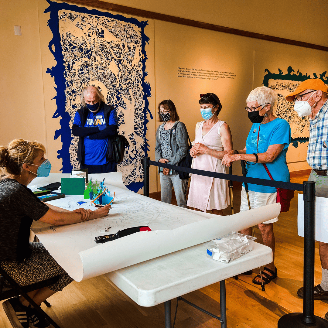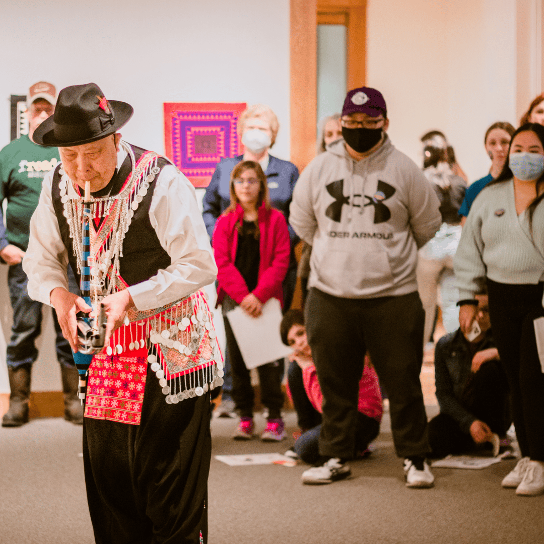 Winona individuals and families were reportedly overjoyed to return to in-person activities in 2022. With another grant’s support MMAM was able to welcome Hmong traditional artists: a needleworker and a Qeej (flute) player. This was in theme with MMAM’s Hmong gallery exhibition: Cloth as Community: Hmong Textiles in America. The May 2022 Seasonal Saturday featured fine paper cutting demonstrations by exhibition artist, Sonja Peterson. Her exhibition of large, intricate cut-paper artworks stops people in their tracks and catches their breath. It is very popular with visitors.