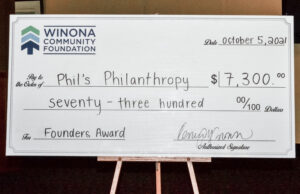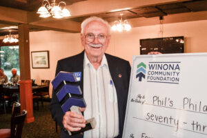What does Winona mean to Phil? He conveys, “I love everything about Winona. It’s a good place to live and raise a family, and the people are supportive. Winona has been good to me.” The Founders Award is given to an individual who has demonstrated an extraordinary commitment to improving life in the Winona are through the use of their time, talent, and treasure. Phil created a vision of what Winona could be, and has continually motivated others within the community in pursuit of that vision. It’s an honor for the Foundation to award Phil, as his lifelong dedication and care has transformed our community.