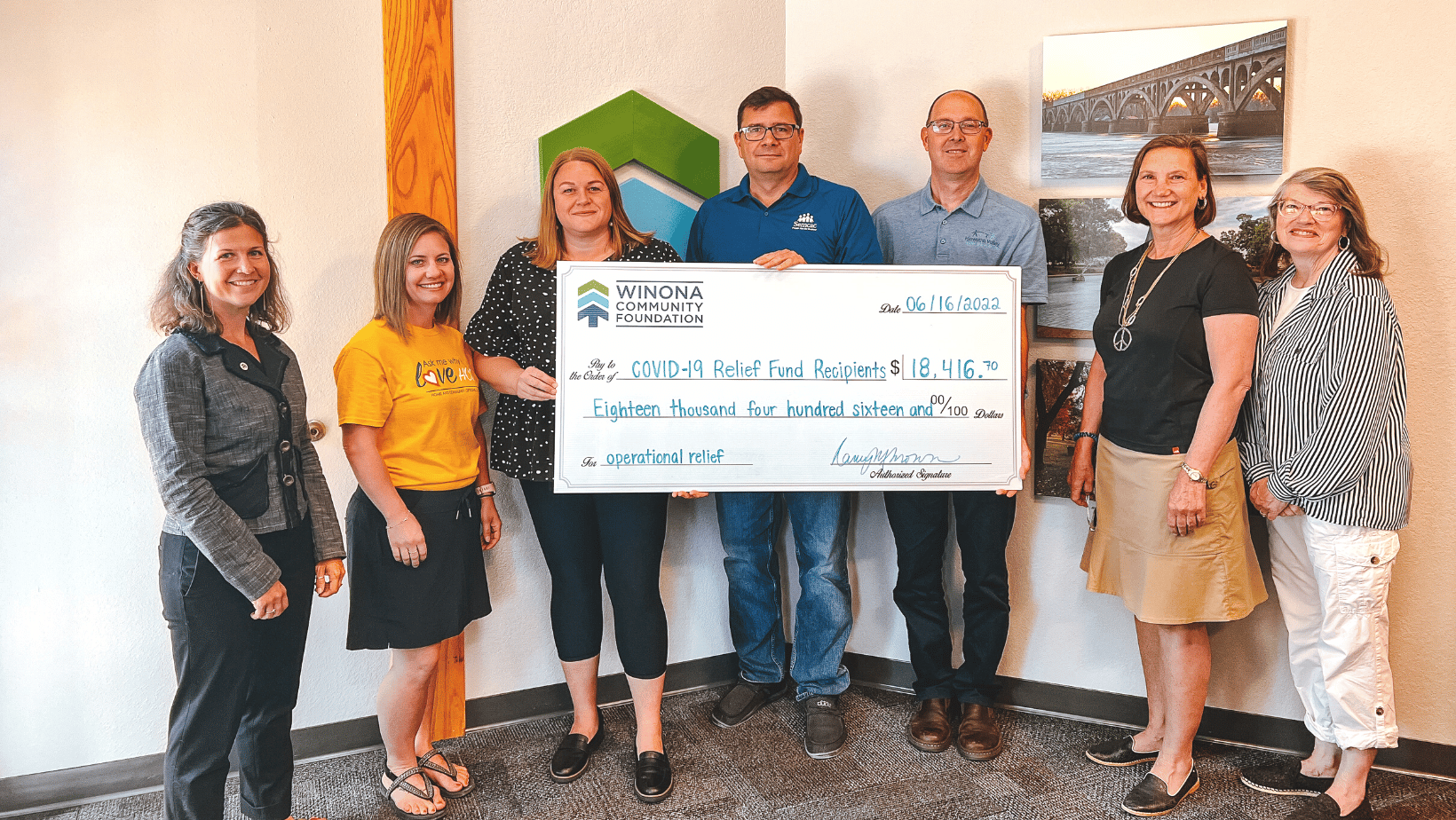 When the Foundation took on the role of receiving contributions for this fund, we made a commitment that every penny would go back into the community for that purpose. If there were any funds remaining, these dollars would be distributed to our agency partner nonprofits for operational relief.  Despite the pandemic’s lingering effects, the Winona Community Foundation’s Board of Directors recognized we are in a more “manageable” point in time. With that, the Winona Community Foundation’s Board of Directors voted to close out the established COVID-19 Relief Fund. At the time of this decision, there was $18,416.70 remaining in the fund.