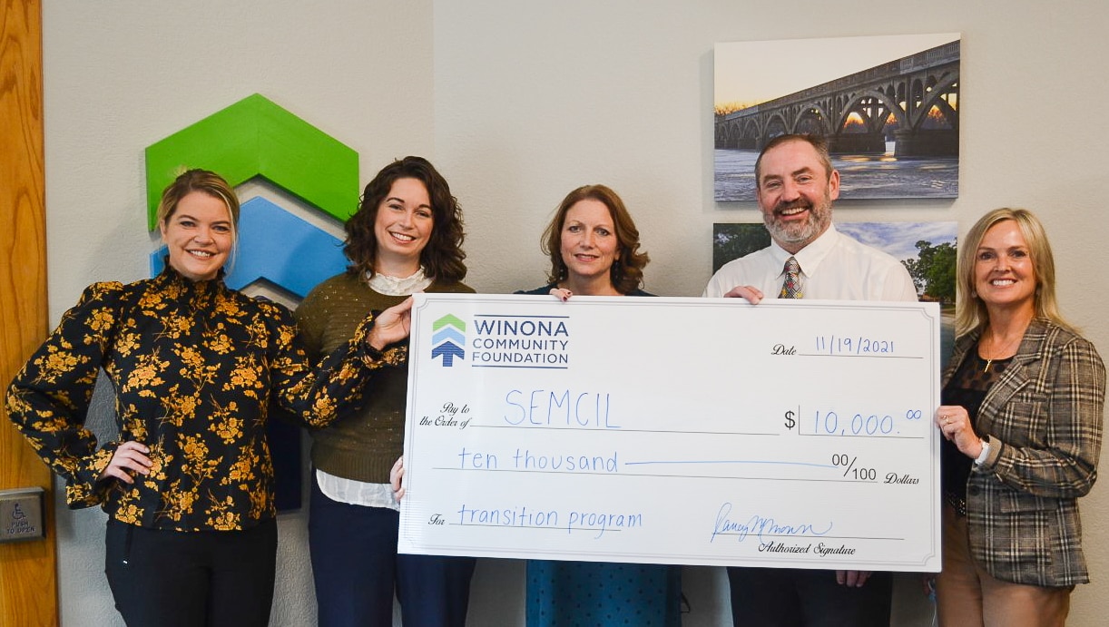 Southeastern Minnesota Center for Independent Living, Inc. (SEMCIL) has been awarded a $10,000 grant to support their transition program for ages 14-24. Along with addressing key strategies, 58% of SEMCIL’s staff and 57% of its board identifies as having a disability. They also have existing partnerships with Winona Area Public Schools, the Area Learning Center, and Riverway Learning Community.